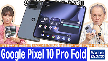 「Google Pixel 10」シリーズ最後の4機種目、フォルダブルの「Google Pixel 10 Pro Fold」を紹介します。従来はIPX8の防水のみに対応していたものが、IP68準拠防水防塵に対応。5015mAhのバッテリーを搭載し、約30分で最大50%まで急速充電とPixelsnap/Qi2準拠最大15Wワイヤレス充電に対応。カメラ機能も充実し、新機能の「カメラコーチ」も搭載。そしてミリ波対応! ニュース行ってきましたは、「シャープ AQUOS sense10発表」「シャープ VRグラス Xrostella VR1開発」「シャープ 新製品発表会」「マネックス証券 ドコモとの資本業務提携経過報告会」。